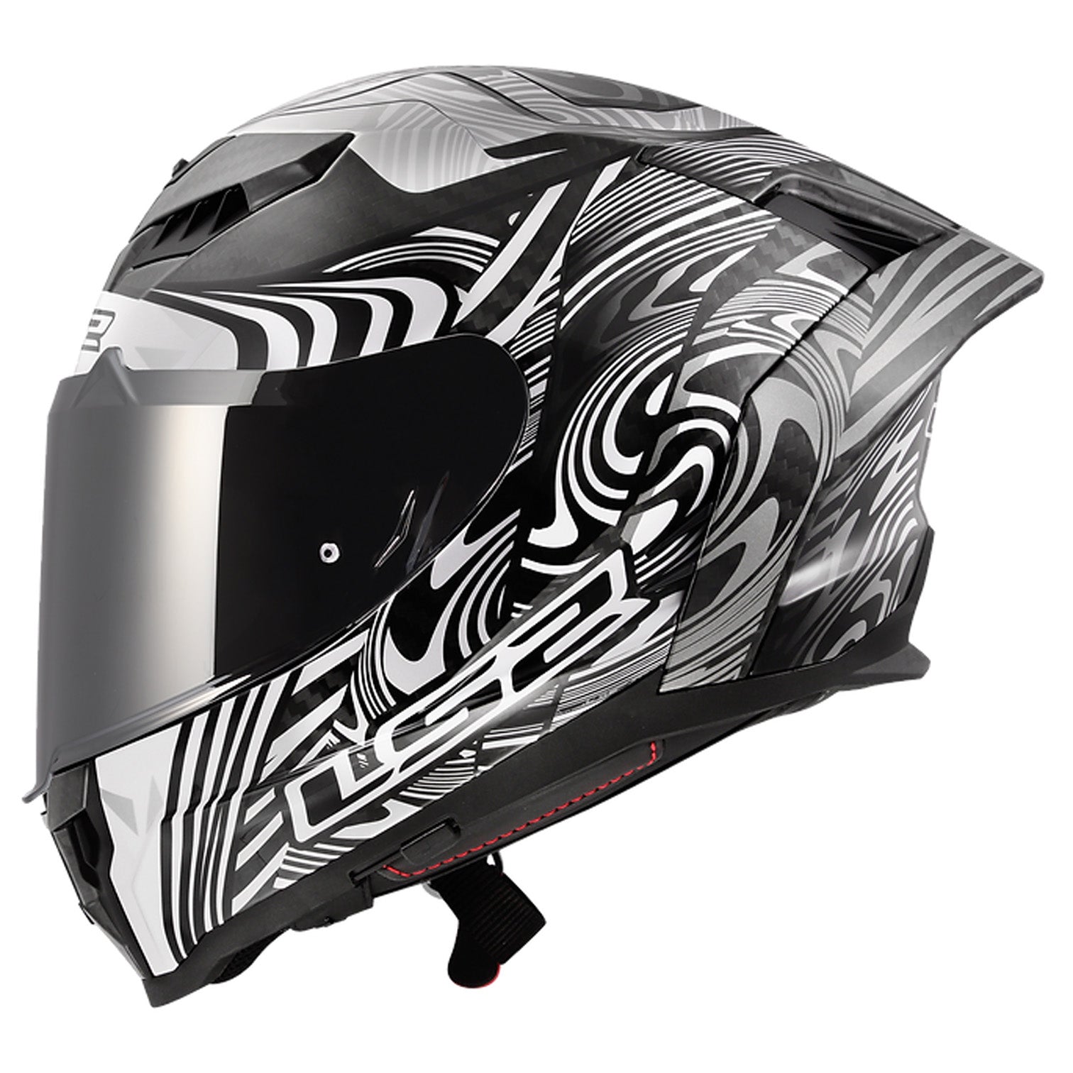 Meets or exceeds ECE 22.06 and DOT FMVSS 218 safety standards. Constructed from lightweight and durable carbon fiber.